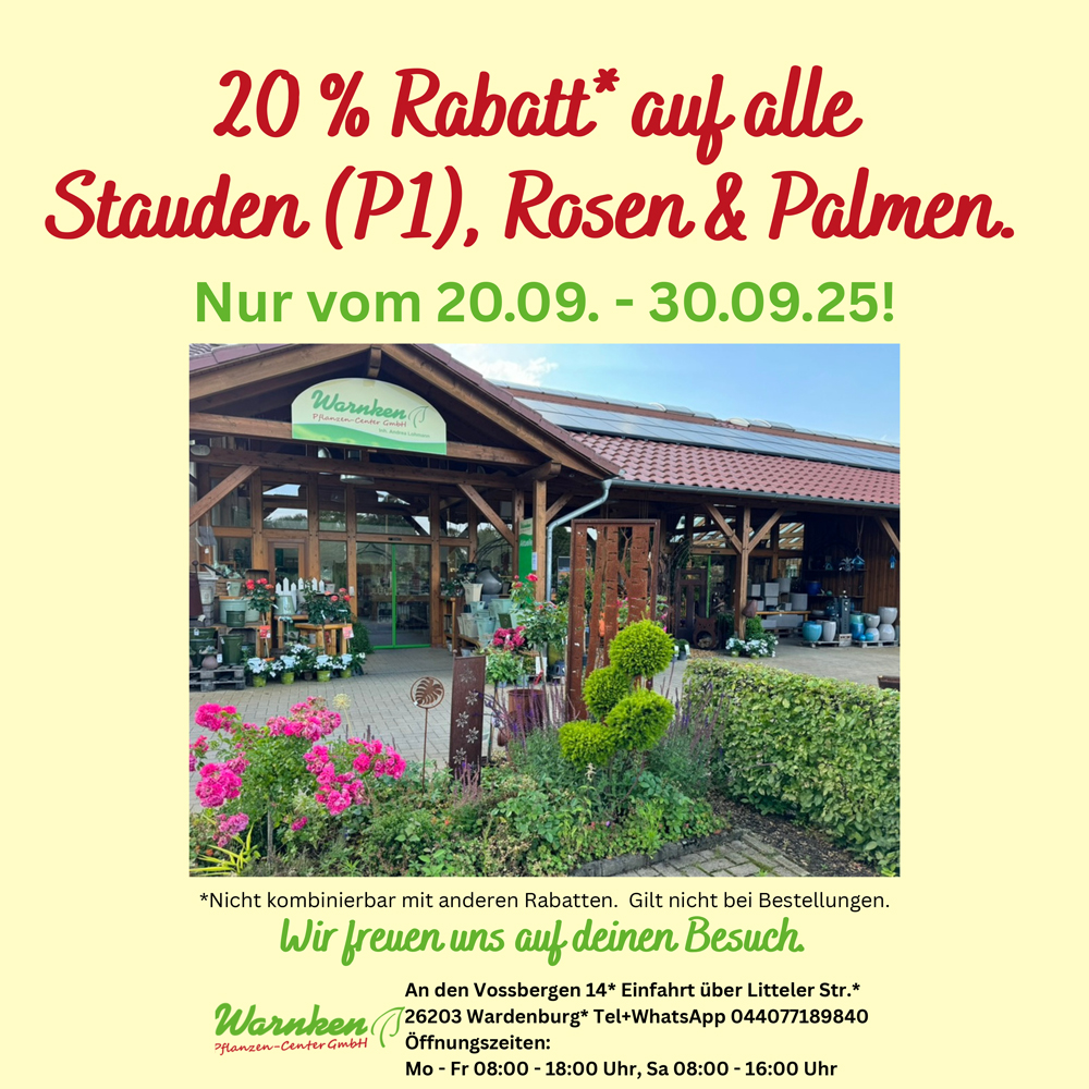 info@warnken-pflanzen.de Wir sind bestrebt, alle Anfragen zu prüfen und innerhalb von 3–5 Werktagen zu antworten. Wenn Sie Unterstützung beim Zugriff auf Teile dieser Website benötigen, stellen wir auf Anfrage gerne alternative Zugangswege bereit.