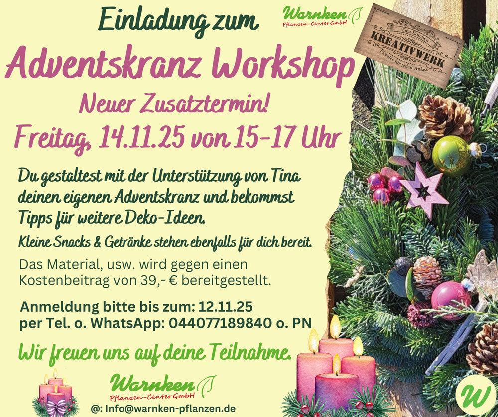 info@warnken-pflanzen.de Wir sind bestrebt, alle Anfragen zu prüfen und innerhalb von 3–5 Werktagen zu antworten. Wenn Sie Unterstützung beim Zugriff auf Teile dieser Website benötigen, stellen wir auf Anfrage gerne alternative Zugangswege bereit.
