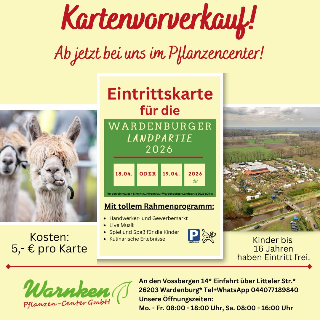 info@warnken-pflanzen.de Wir sind bestrebt, alle Anfragen zu prüfen und innerhalb von 3–5 Werktagen zu antworten. Wenn Sie Unterstützung beim Zugriff auf Teile dieser Website benötigen, stellen wir auf Anfrage gerne alternative Zugangswege bereit.